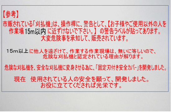 - 「最も危険な農機具」として現在も「刈払機」が使用されています。 故に 提案します。