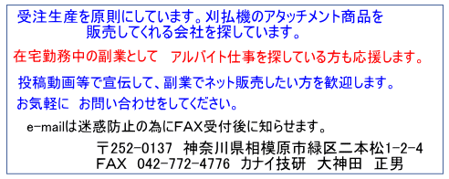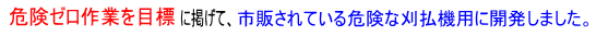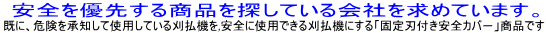 - カナイ技研は 「刈払機の安全カバ-」アタッチメントを独自の発想で開発設計しました。 製造はカナイ技研が担当します。(販売能力は有りません)
