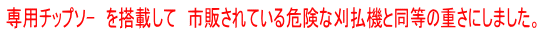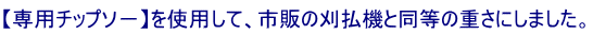 - バリカン草刈機と比較して、バリカンの往復回転より連続回転の方が、能率が優れているので採用しました。